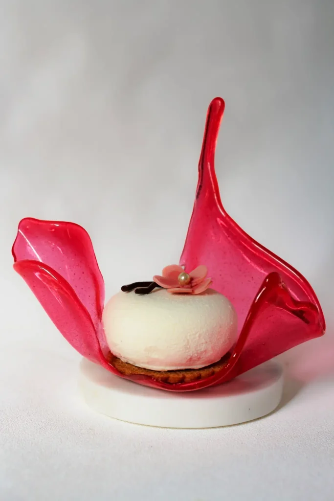 Mon univers reflète mon amour pour une pâtisserie moderne, élégante et soignée. J’accorde autant d’importance au visuel qu’au goût : j’aime jouer avec les textures, rechercher l’équilibre entre intensité et fraîcheur et concevoir des desserts qui marquent autant les pupilles que les papilles.