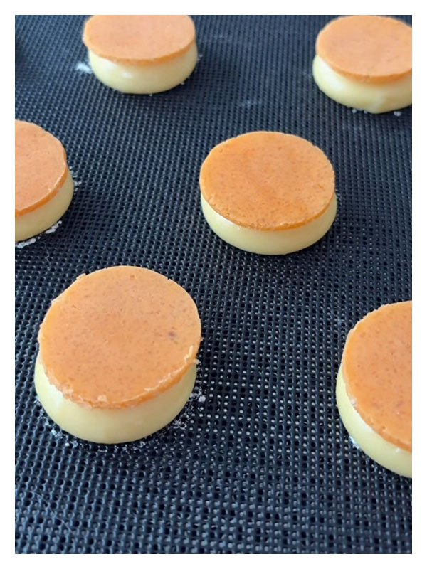 - Détailler des cercles un peu plus grand que la taille des choux à l'emporte-pièce et réserver au congélateur jusqu'à la cuisson des choux