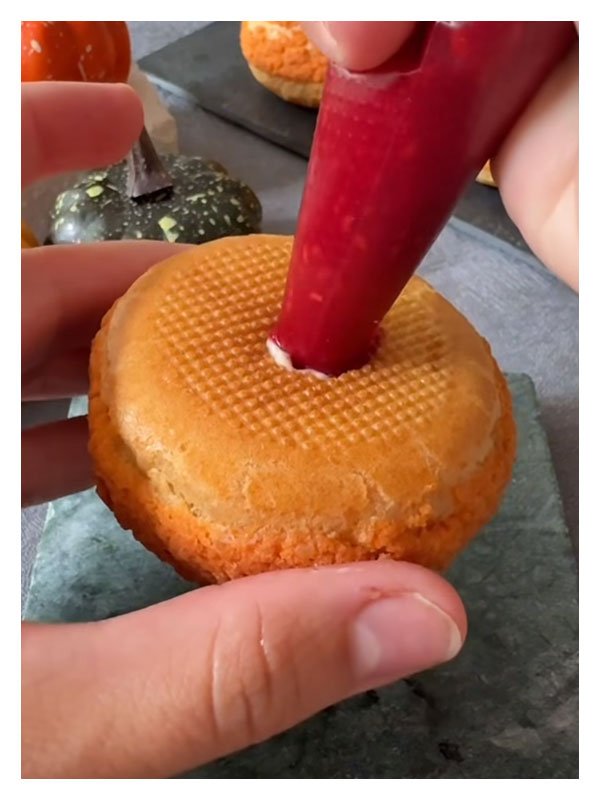 - Déposer un disque de craquelin sur chaque chou.