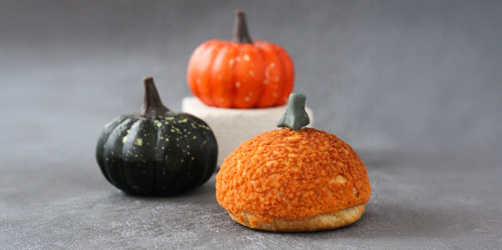 - Colorer la pâte avec un peu de colorant vert et façonner de petits pédoncules de citrouille.