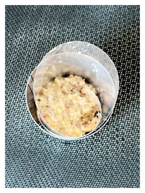 6. Verser dans 5 cercles de 6 cm chemisés de papier cuisson.
