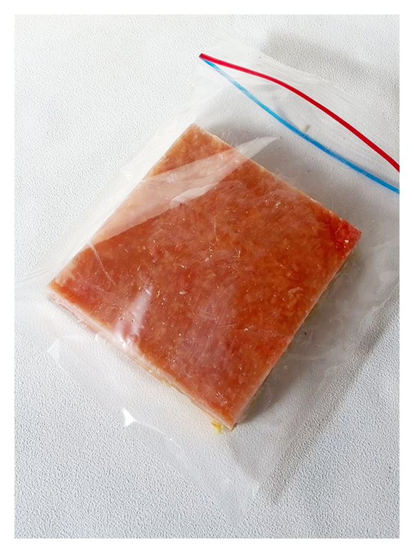 - Dans un petit sac congélation à zip de 20 × 20 cm, placer l’insert au centre.