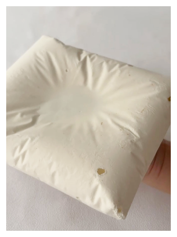 - Démouler le coussin en coupant le sac congélation et décorer comme vous le souhaitez ! Personnellement, j’ai choisi de le floquer avec un spray velours blanc.