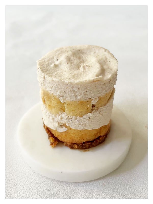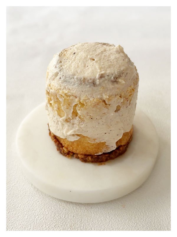 Comme un petit nuage gourmand posé sur votre assiette, ce layer cake en forme de bonnet mêle textures et saveurs dans une danse sucrée et réconfortante. 🤎Quantités pour 5 layer cake individuels