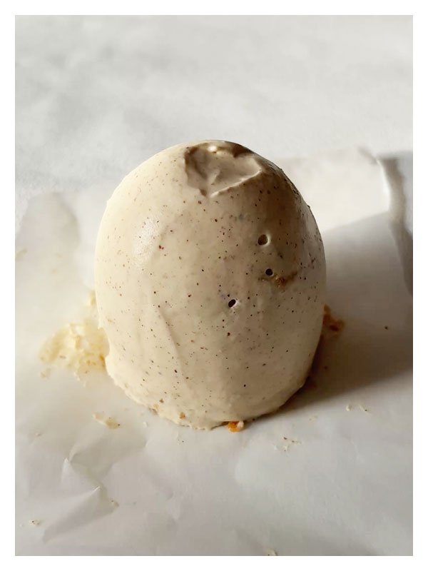 - Coller 2 demi-sphères avec un peu de crémeux café et laisser prendre quelques minutes au congélateur